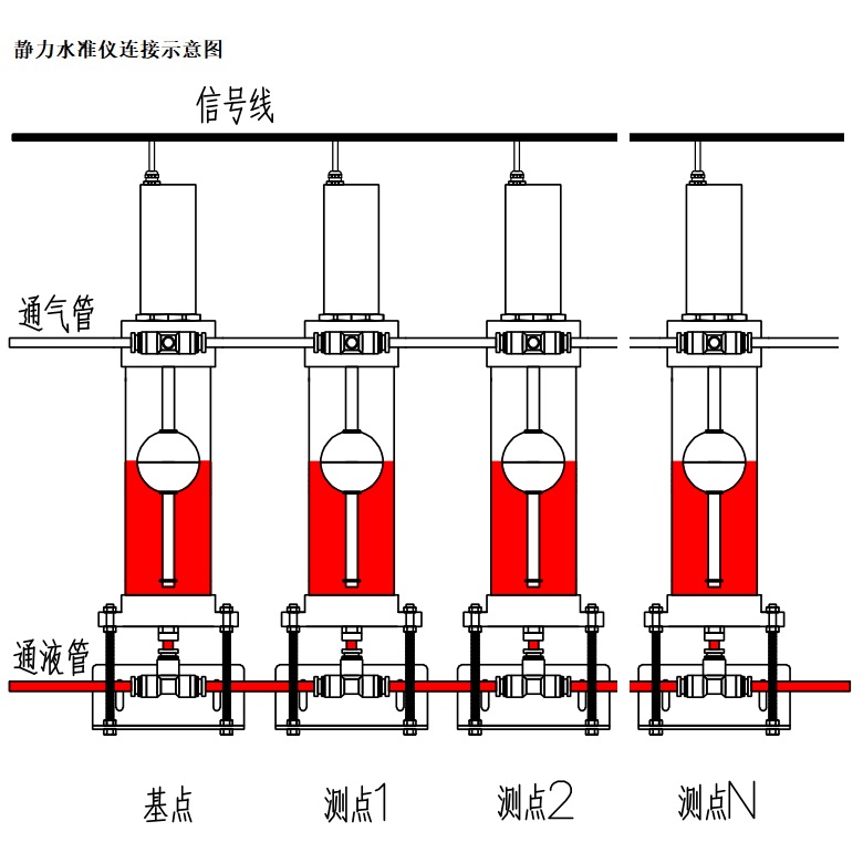 本款靜力水準儀主要用于大型儲罐、大壩、核電站、高層建筑、基坑、隧道、橋梁、地鐵等垂直位移和傾斜的監測。靜力水準系統一般安裝在被測物體等高的測墩上或被測物體墻壁等高線上,通常采用一體化模塊化自動測量單元采集數據,通過有線或無線通訊與計算機連接,從而實現自動化監測。